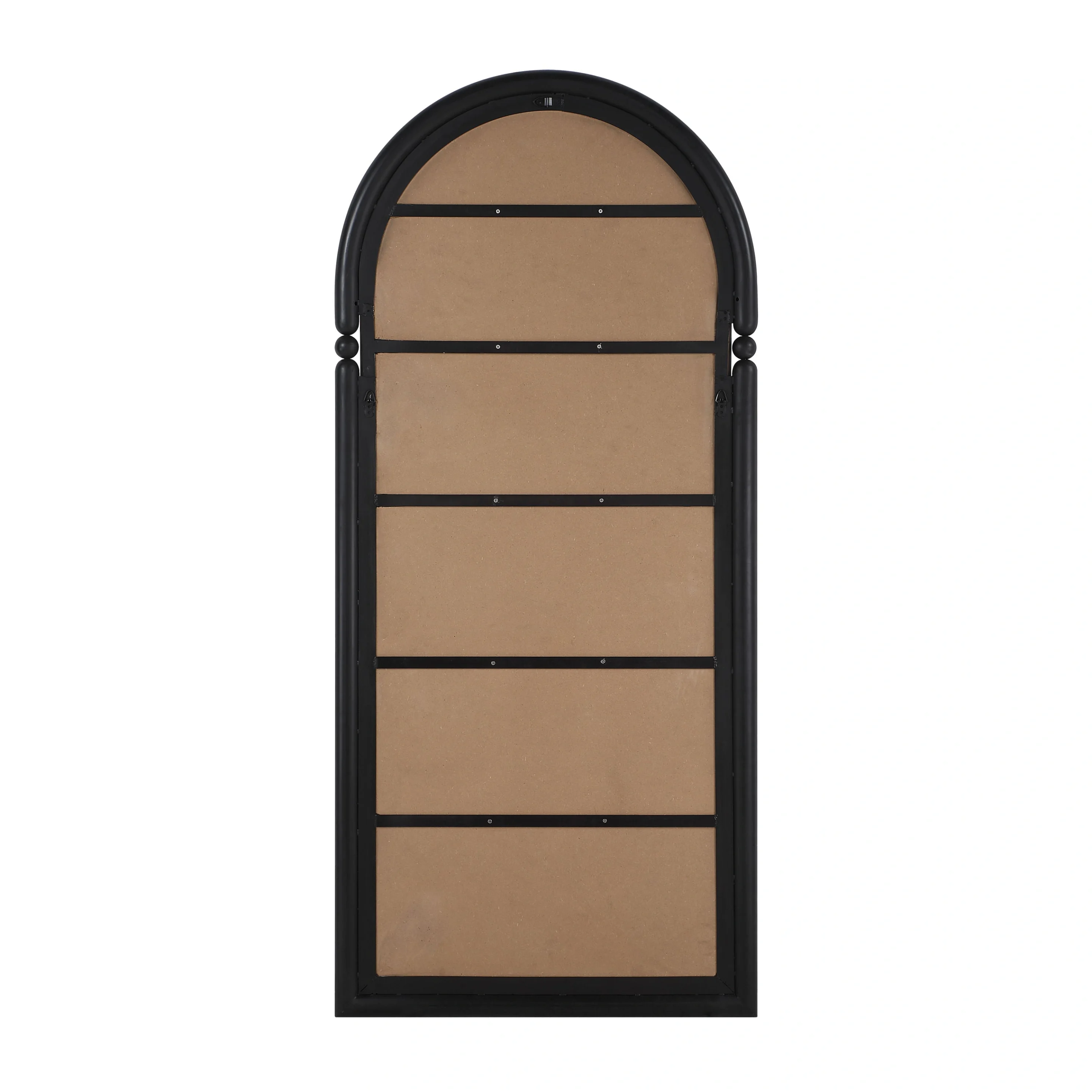 - Summary: Iron full-length mirror with a powder-coated matte black finish, arched silhouette, and decorative bead detailing.