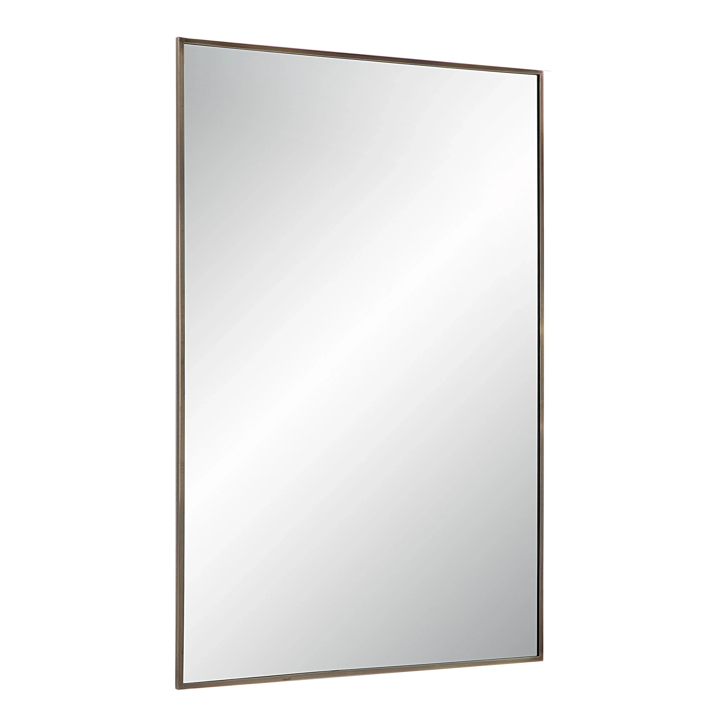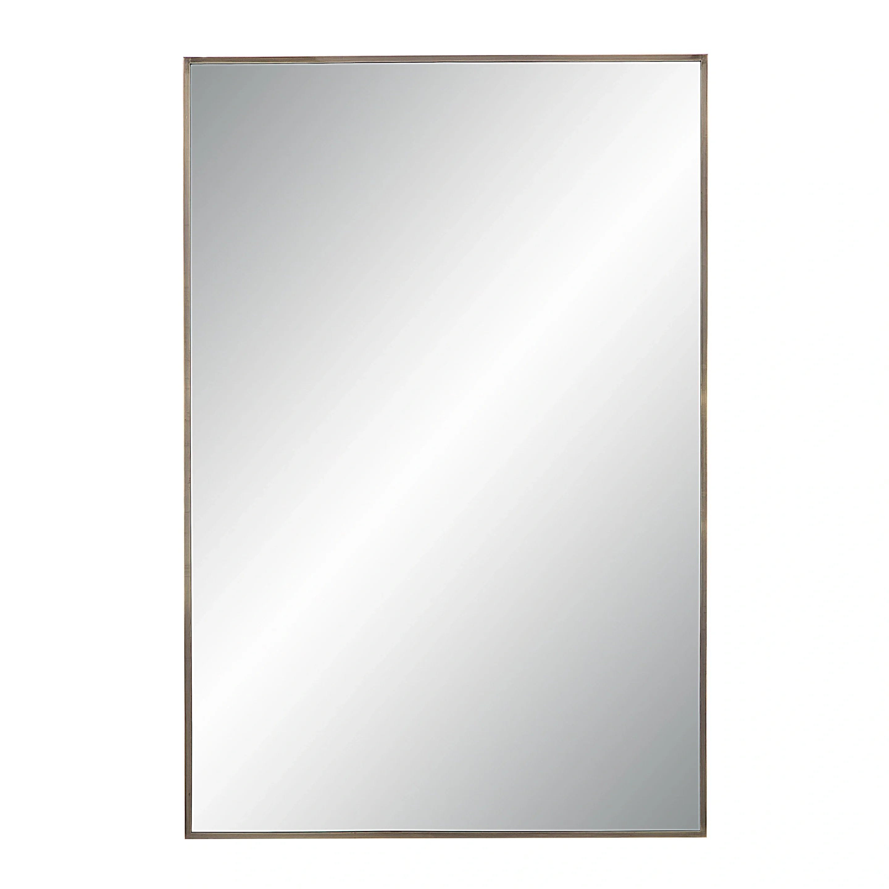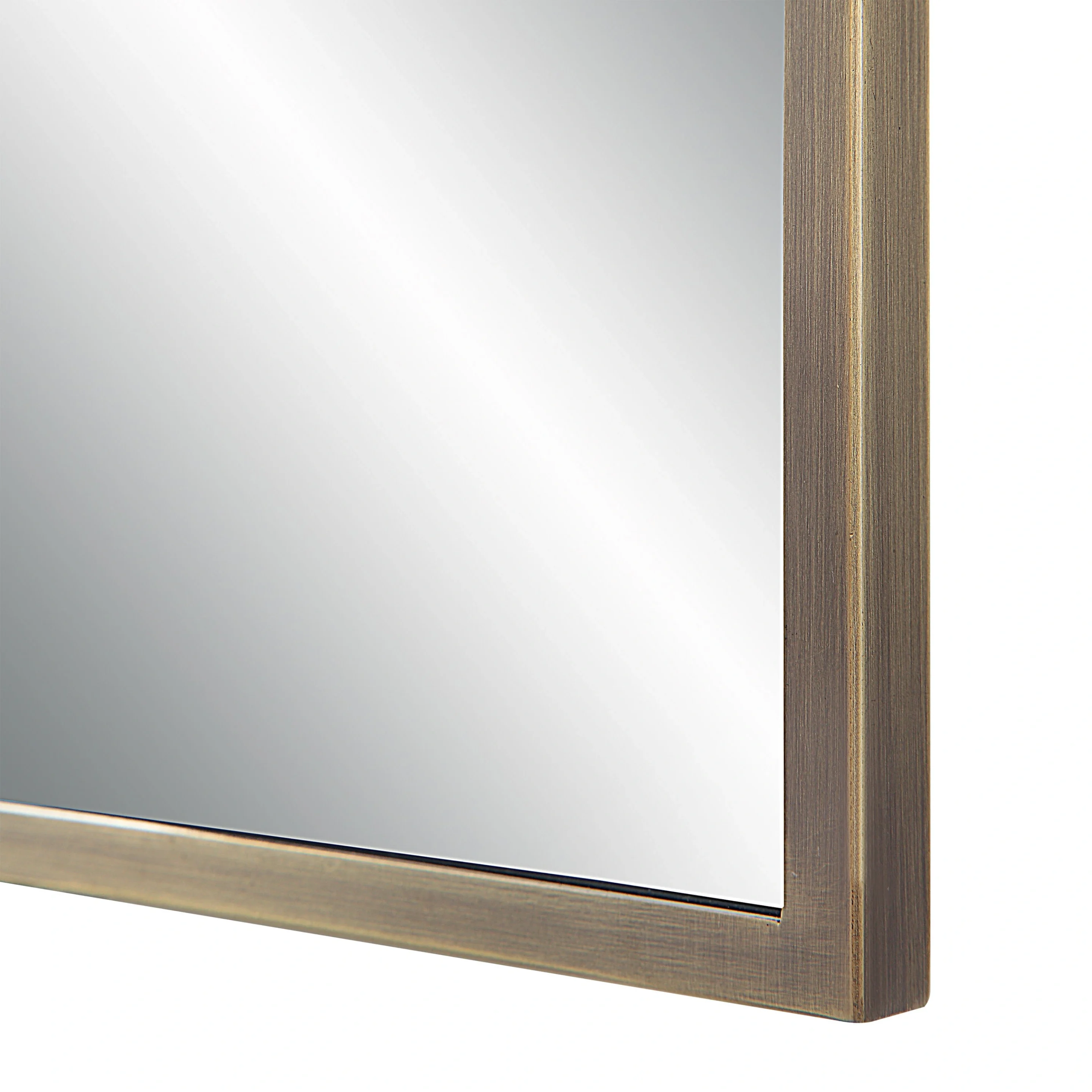• Summary: Stainless steel wall mirror with a plated brushed bronze finish, arch-inspired silhouette, and flexible two-way hanging.