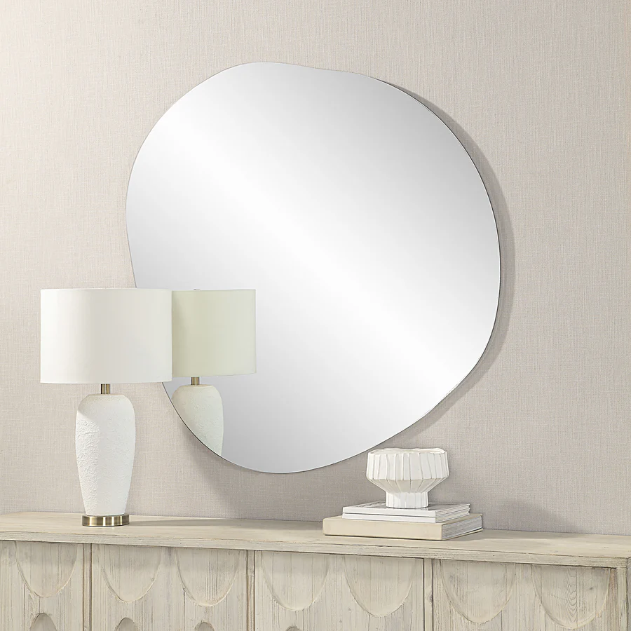 Material / Finish Summary: Clear mirror glass with a sleek frameless polished edge and durable backing for a modern minimalist look
