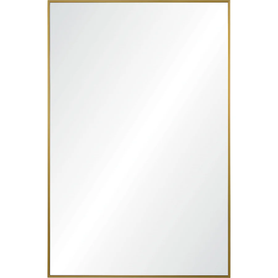 The simple addition of a satin brass-finished iron frame takes this standard mirror design to new heights. Set in the mid-century interior, its radiant warmth is further enhanced by complementary accessories in its midst. It has a substantial structure yet still integrates effortlessly.