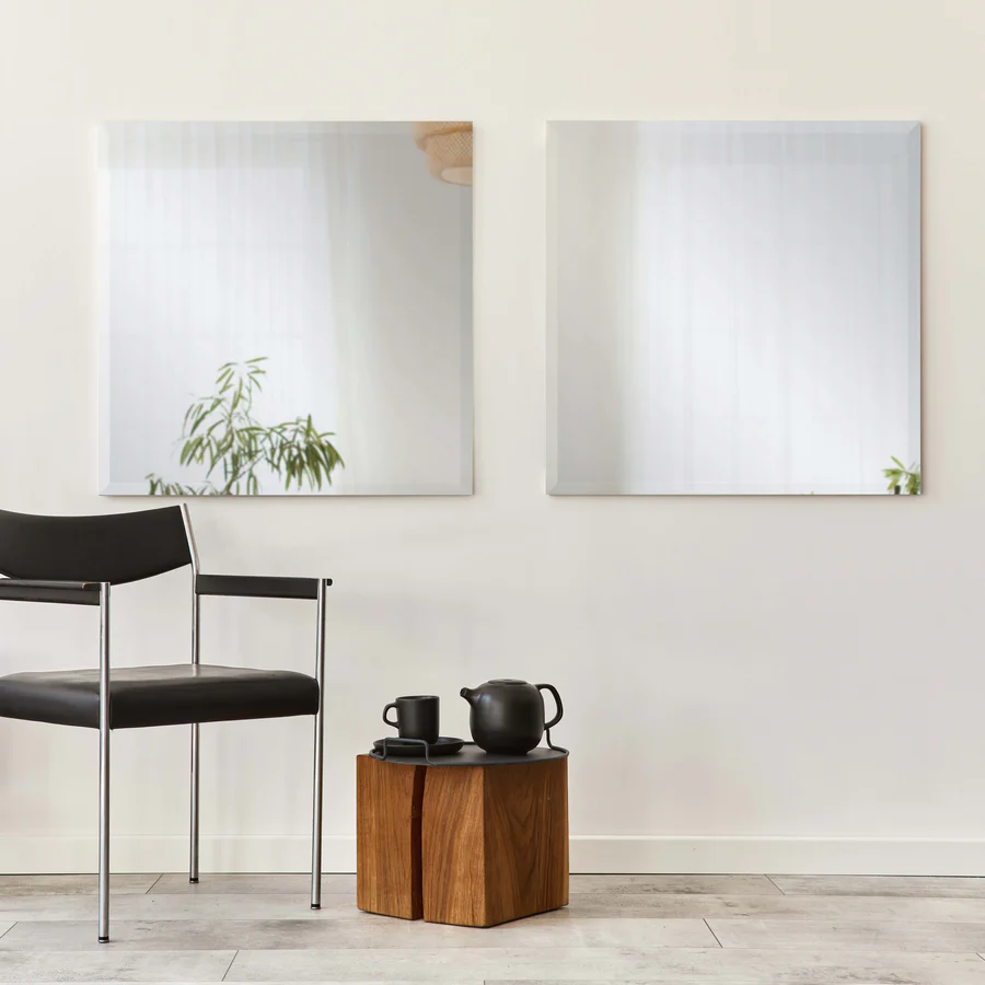 Feature: Sleek square reflective surface designed to brighten interiors