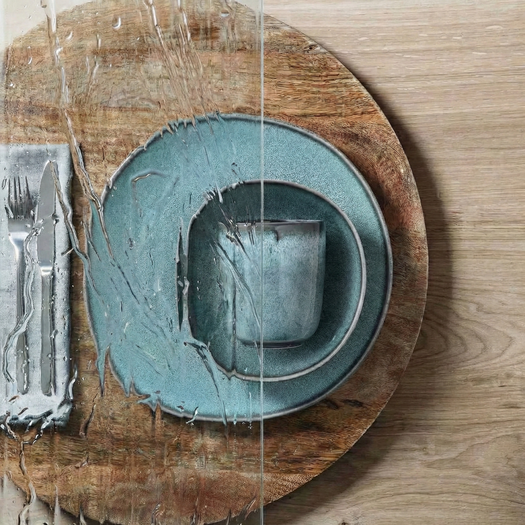 Gothic’s hammered texture creates an uneven, dimpled surface that softly distorts objects behind the glass—preserving colour and general shape while obscuring fine details. The effect is subtle enough to let light and life show through, yet effective enough to provide meaningful privacy in everyday applications.