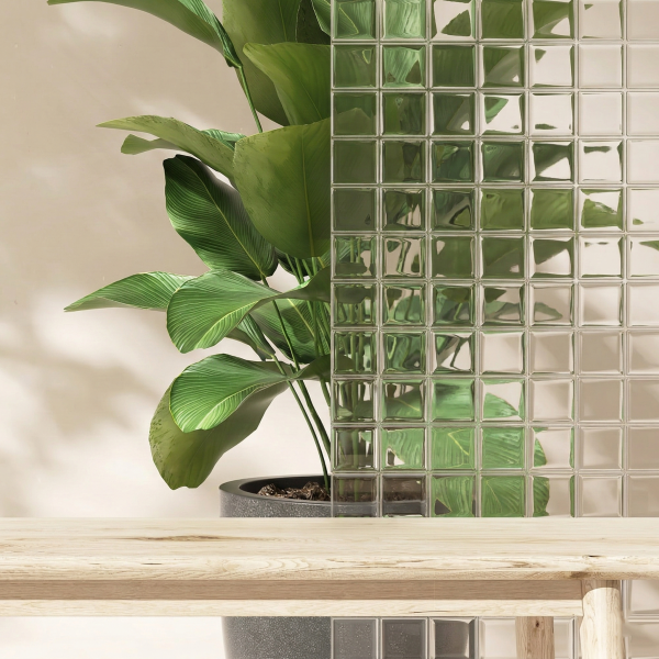 Listral M’s grid of intersecting grooves breaks up the view of objects behind the glass into small, tile-like segments. Colours and general shapes remain clearly visible, but the cross-reeded texture adds just enough distortion to soften details making it a smart choice for areas where you want visual separation without full concealment.