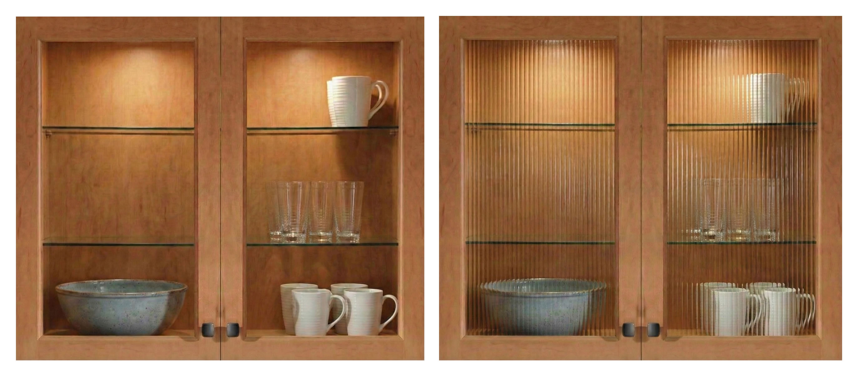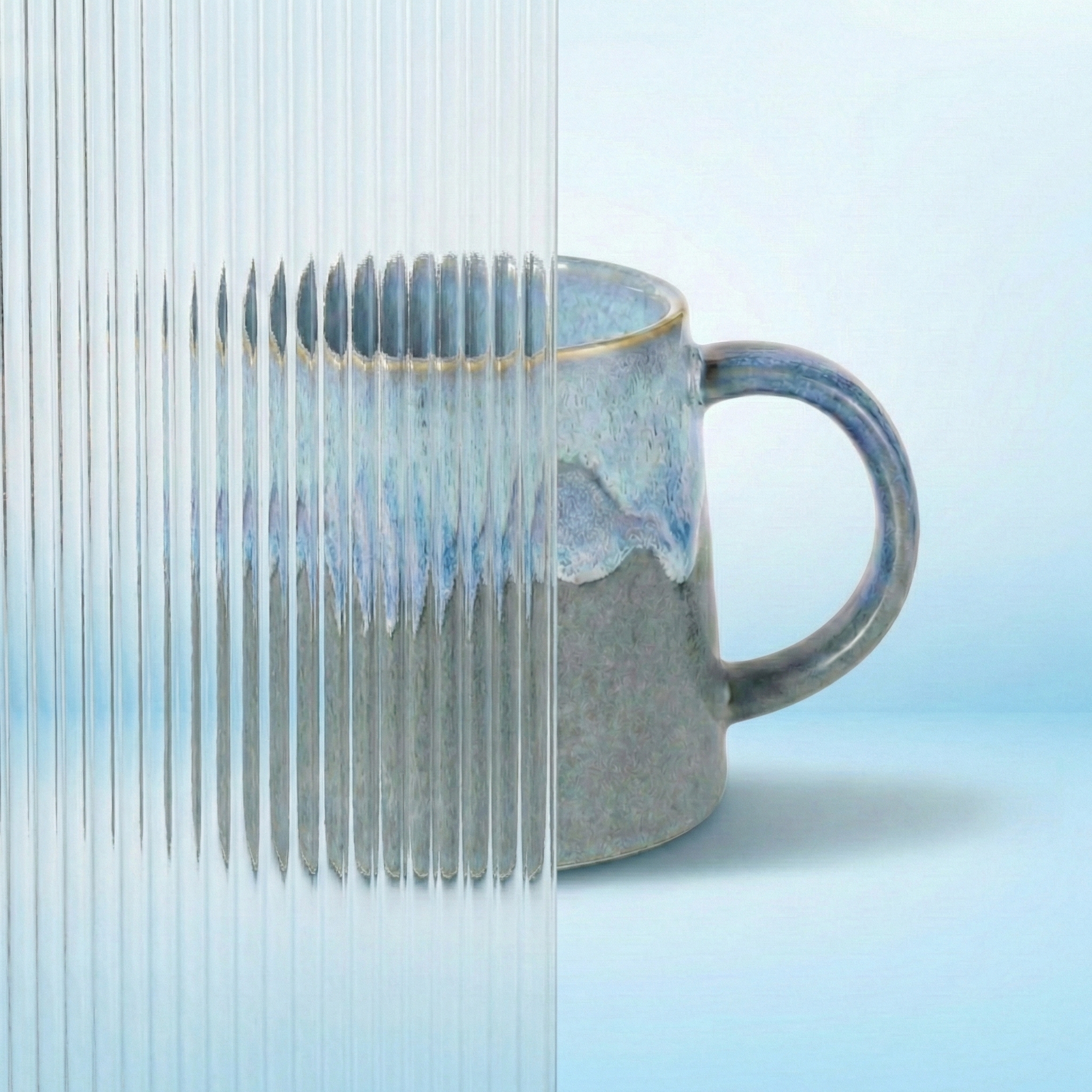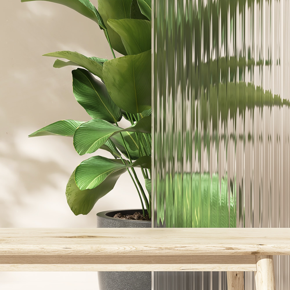 Patterned glass transforms ordinary surfaces into design features. Compare clear glass to Narrow Reed and see how the fine vertical flutes slice the view of objects behind it into soft, repeating segments. Colours remain vibrant and shapes are recognizable, but the ribbed texture adds an elegant layer of distortion that turns simple glass panels into eye-catching architectural elements—perfect for open-plan living, modern kitchens, and stylish commercial spaces.